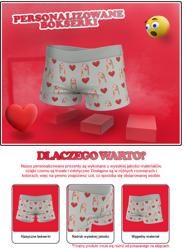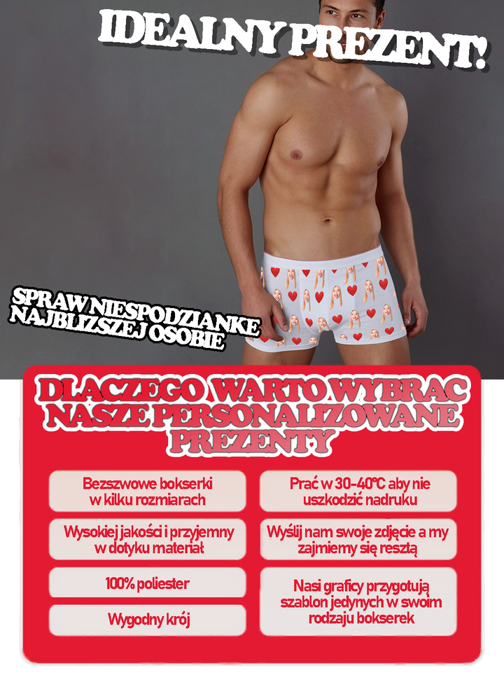 Personalizované boxerky s vlastním obrázkem obličeje je naším stěžejním produktem, který obdarovanému jistě vykouzlí úsměv na tváři. Tento jedinečný dárek umožňuje přidat na boxerky vlastní fotografii nebo potisk, což z něj činí univerzální dárek. Navíc jsme přidali i vtipné vzory, které tomuto již tak neobvyklému dárku dodají ještě větší kouzlo.