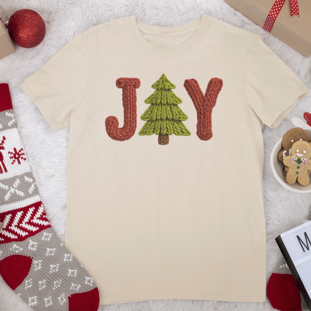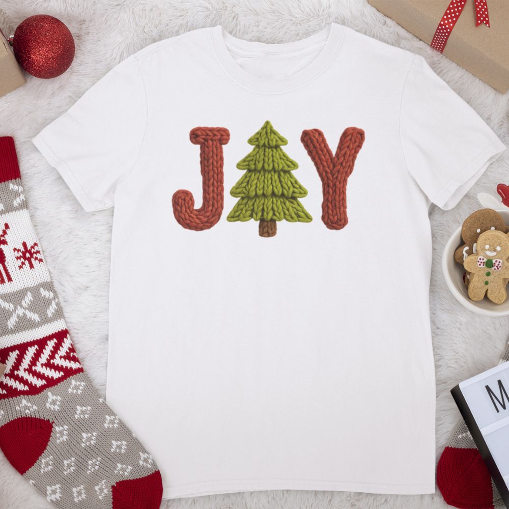 Szukasz czegoś, co doda Twoim świętom ciepła, uroku i prawdziwie zimowego klimatu? Koszulka „JOY” z napisem stworzonym z włóczkowych, mięciutkich liter oraz choinką jako literą „O” to idealny wybór dla każdego, kto kocha świąteczną atmosferę. Prosty, ale niezwykle efektowny design sprawia, że koszulka świetnie sprawdzi się zarówno na co dzień, jak i podczas świątecznych spotkań.