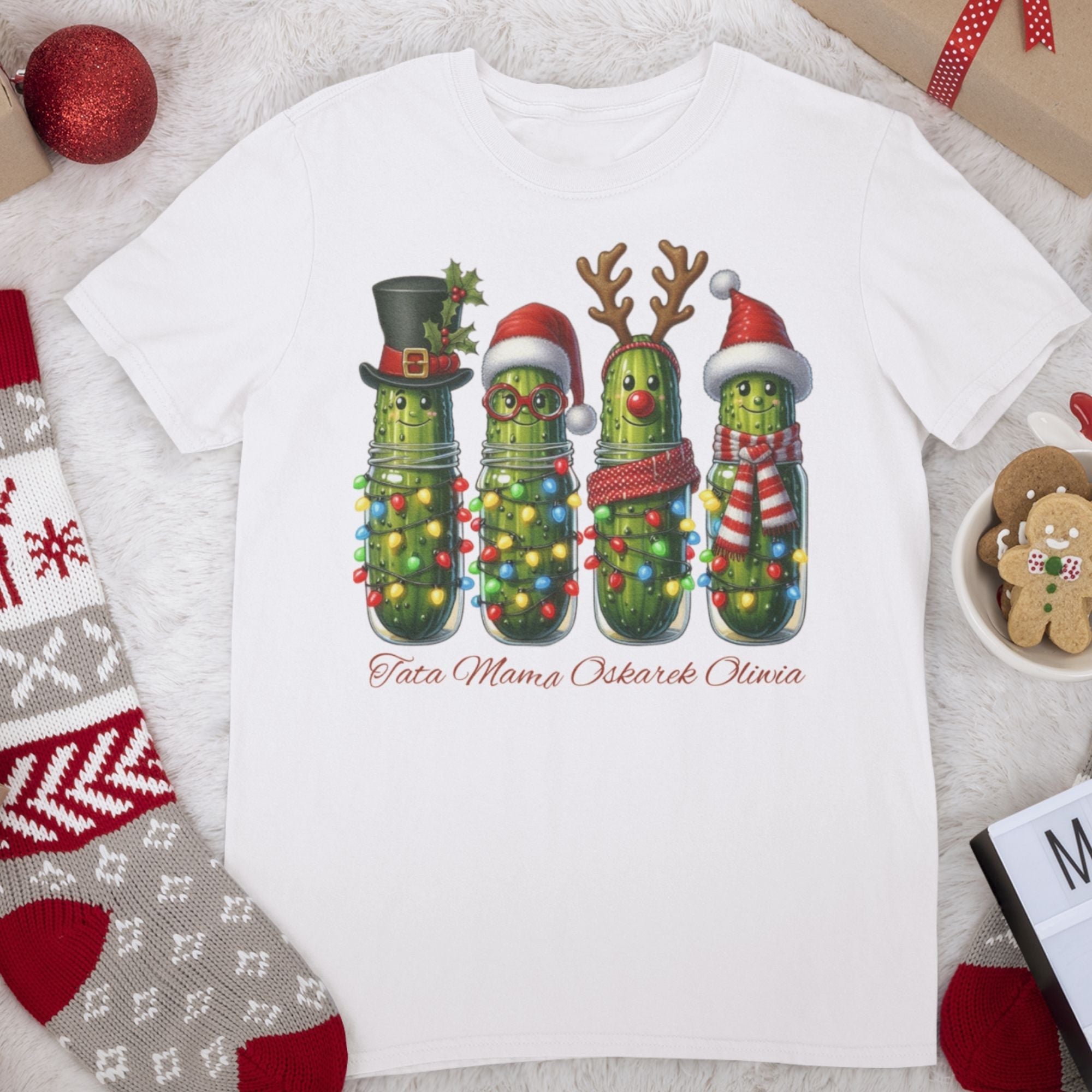 Personalizowana Świąteczna Koszulka – Rodzinka Ogórków z Imionami