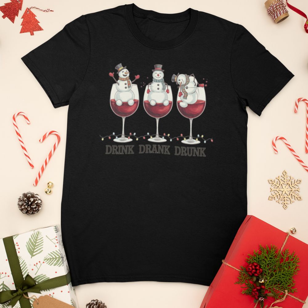 Szukasz prezentu, który rozbawi ekipę przy świątecznym stole? Świąteczna Koszulka „Drink Drank Drunk” to idealny wybór dla wszystkich, którzy kochają święta z przymrużeniem oka – i z kieliszkiem wina w dłoni. Trzy zabawne bałwanki „relaksujące się” w kieliszkach czerwonego wina sprawią, że nikt nie przejdzie obok tej koszulki obojętnie.