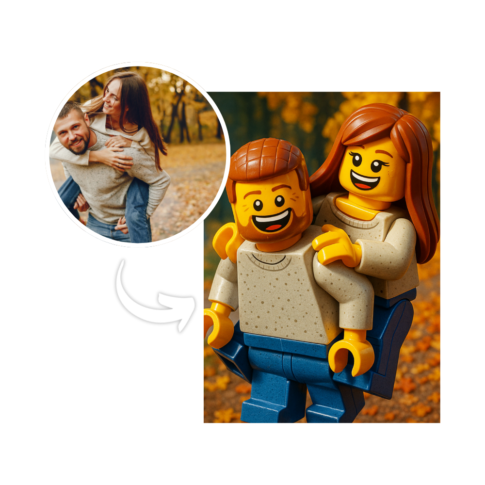 Personalizacja dla Was dwojga Na podstawie zdjęcia tworzymy wyjątkową ilustrację w stylu LEGO: